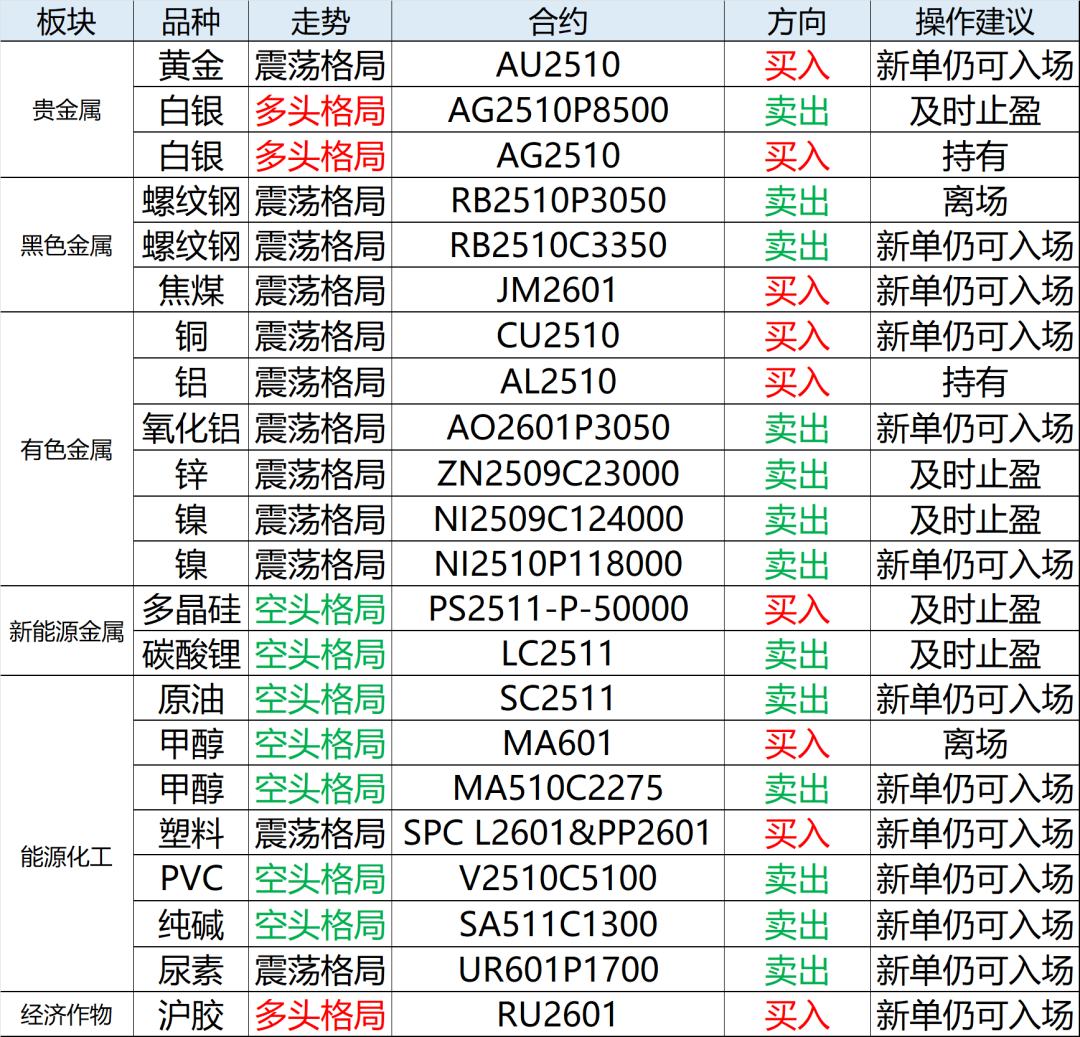 关注品种:黄金(震荡格局)、白银(多头格局)