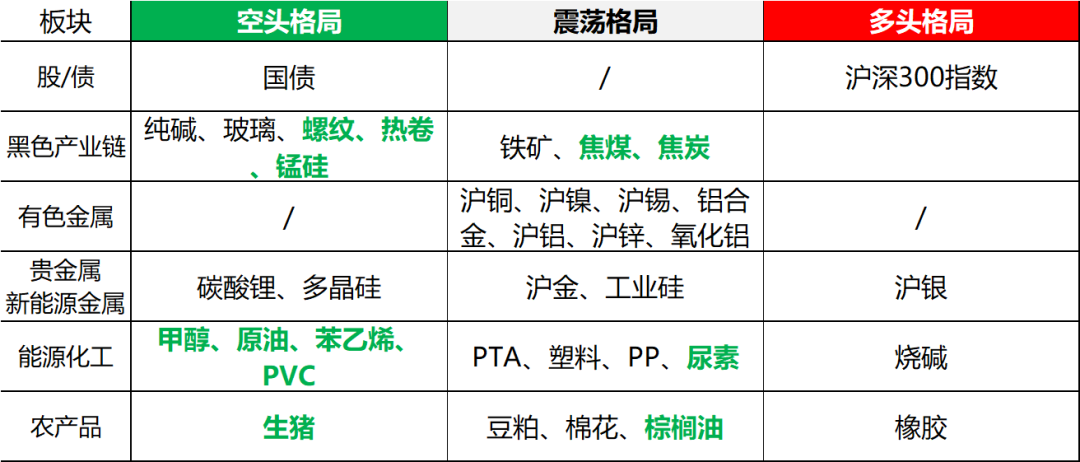 关注品种:螺纹(空头格局)、(空头格局)、铁矿石(震荡格局)、焦煤(震荡格局)、纯碱(空头格局)、玻璃(空头格局)